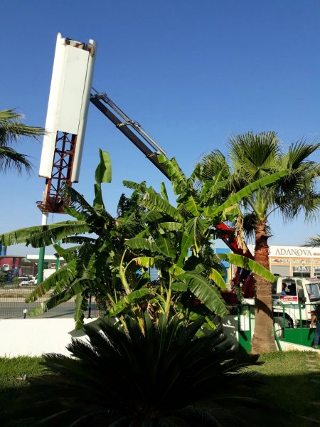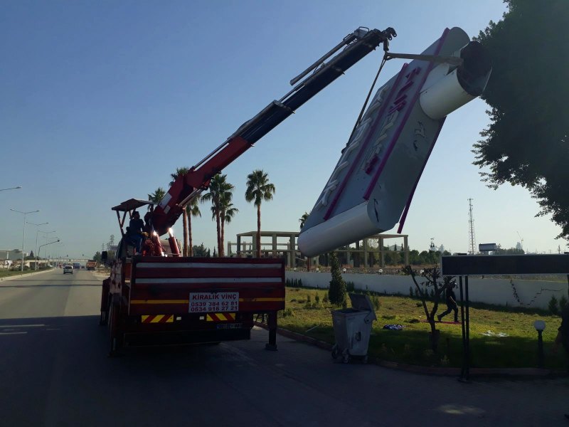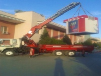 Totem ve tabelalar bazen çok yükseklere monte edilmesi gerekiyor, vinç aracını kullanarak güvenli bir şekilde montajı tamamlayabilirsiniz. |