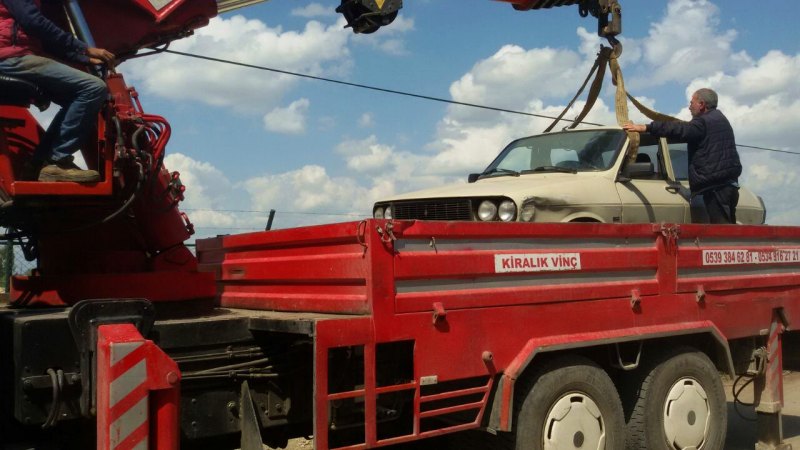 Bu işlem konteynerin vinç yardımı ile kaldırılması ve vinç aracımızın üzerine yerleştirilip taşınması ile oluşur.