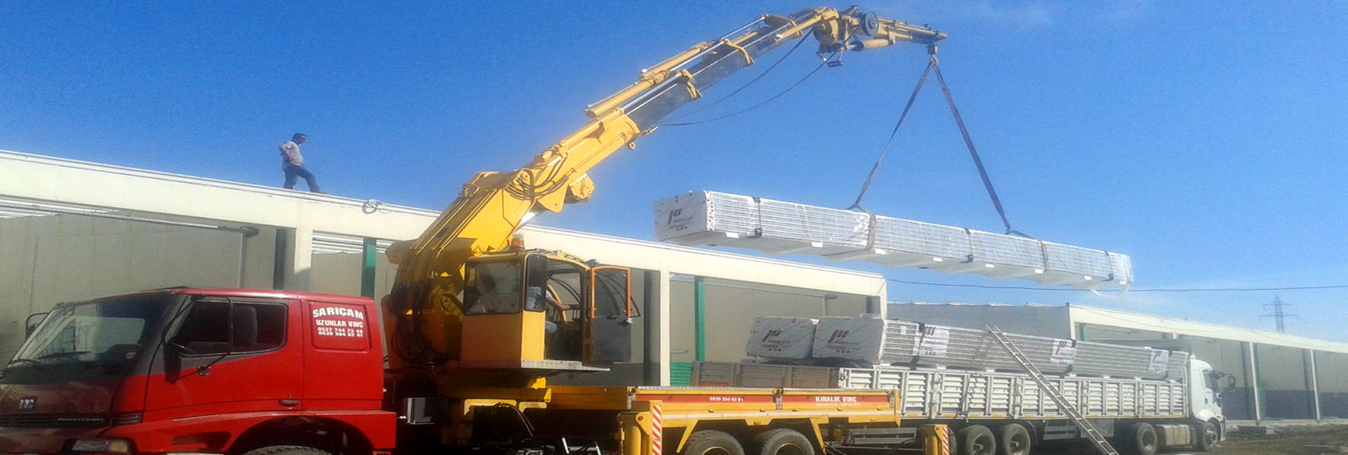 Prefabrik ev veya parçalarını, inşaat malzemelerinin nakliyesini vinçlerimiz yardımı ile kolaylaştırıyoruz.